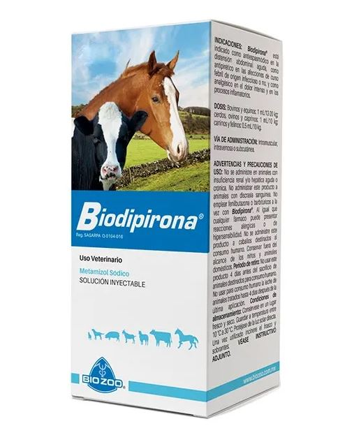 No se administre en animales con insuficiencia renal y/o hepática aguda o crónica. No administrar este producto a animales con discrasia sanguínea No emplear fenilbutazona o barbitúricos en conjunto con Biodipirona. La administración de cualquier fármaco puede causar reacciones anafilácticas No se administre este producto a equinos destinados al consumo humano. Conservar fuera del alcance de los niños y animales domésticos.