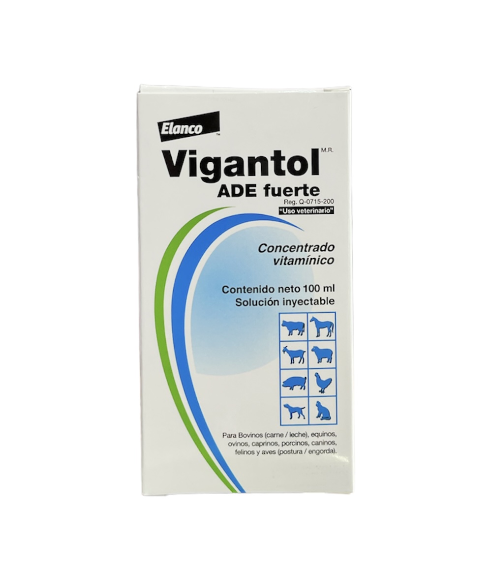 Vigantol ADE fuerte, contiene al grupo de vitaminas liposolubles A, D y E, en una formulación especial que le permite una rápida absorción y disponibilidad a partir del sitio de aplicación; por otra parte, esta ventaja le permite administrarse en el agua, y es altamente recomendable para la terapia de deficiencia de estas vitaminas.